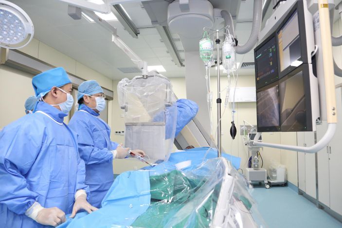 随後,飛利浦最新型号DSA正式投入使用,知名介入專家、中國醫學科學院阜外醫院趙漢軍主任親臨現場指導介入手術開展。介入手術是一種具有高科技含量的檢查、治療技術,在DSA的引導下,将特制的導管、導絲等精密器械,經血管引入人體,對體内病變部位進行精準診斷和局部治療,爲診斷、治療血管疾病的“金标準”。