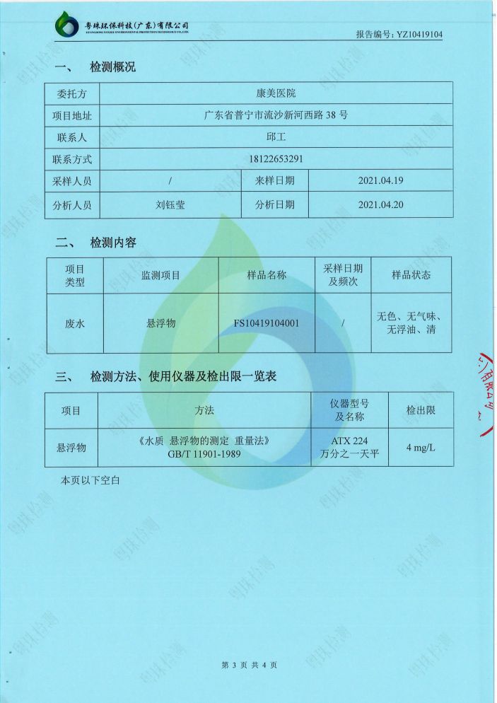 您現在的位置是:康美醫院網站 > 信息公開 > 環境監測信息 > 廢水檢測報告